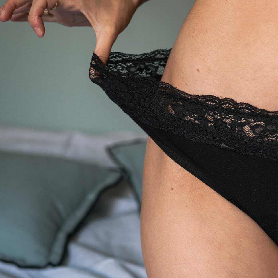 Plus confiance en vos protections hygiéniques traditionnelles ? Marre de jeter des tampons et serviettes chaque mois dans la nature ? La culotte de règles bio (ou culotte menstruelle bio) Bertyne est lavable, confortable et absorbante.